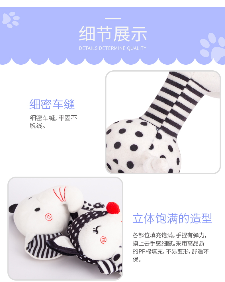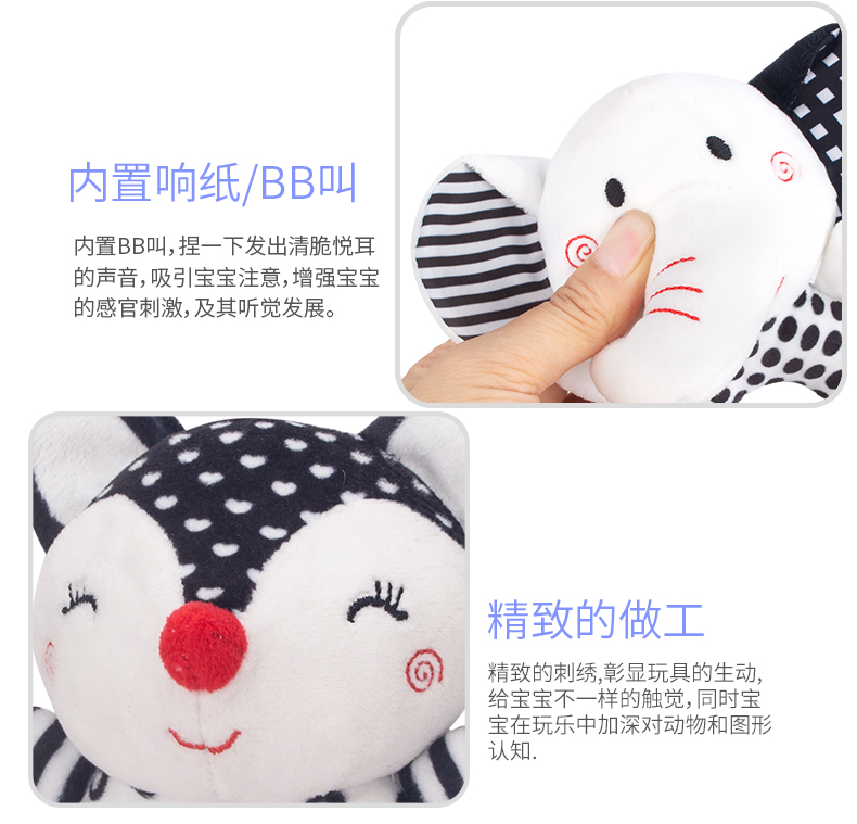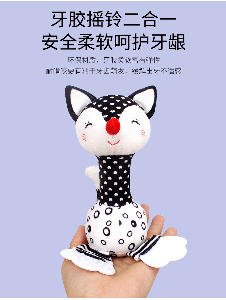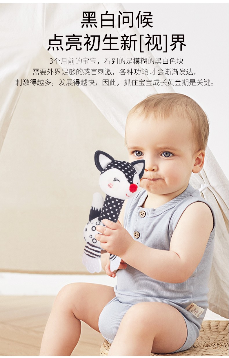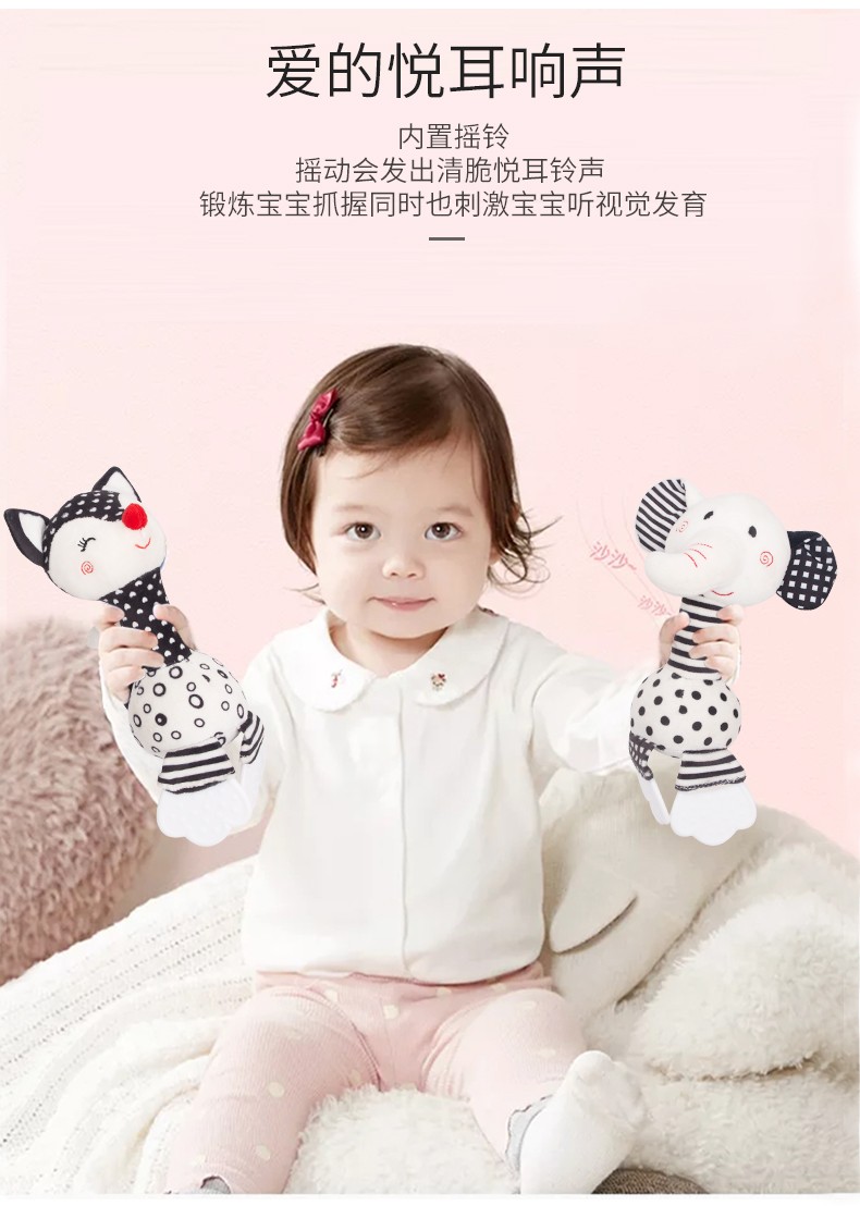 TOLOLO新生兒玩具0-3-6個月毛絨手抓搖鈴1歲寶寶早教嬰兒手搖鈴