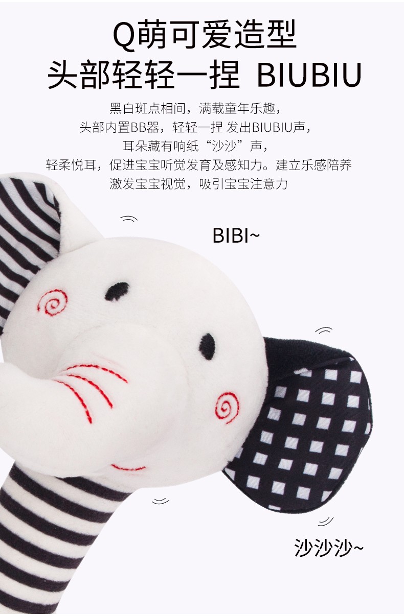 Happy Monkey嬰兒玩具牙膠搖鈴寶寶手搖鈴新生兒玩具毛絨安撫公仔