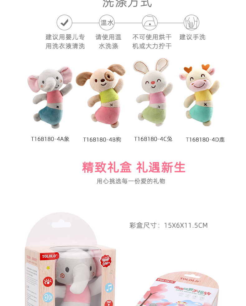TOLOLO新生兒玩具0-3-6個月毛絨手抓搖鈴1歲寶寶早教嬰兒手搖鈴