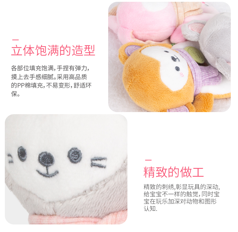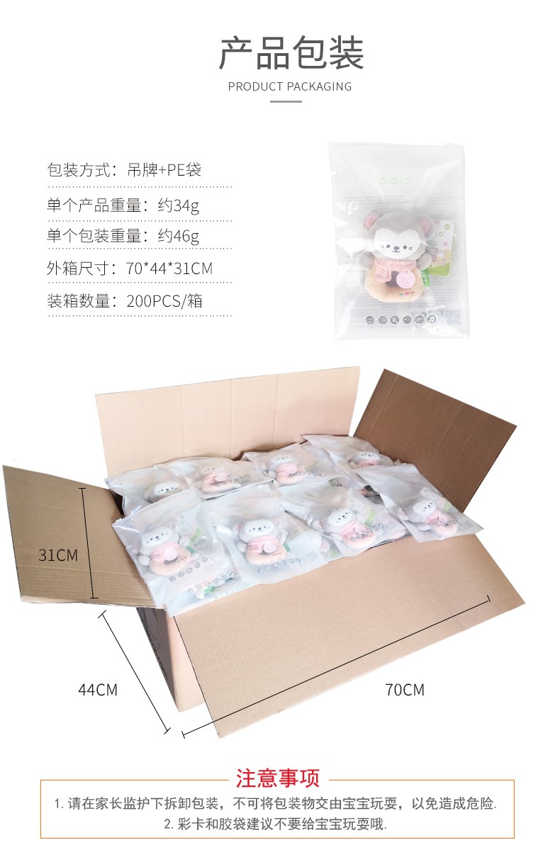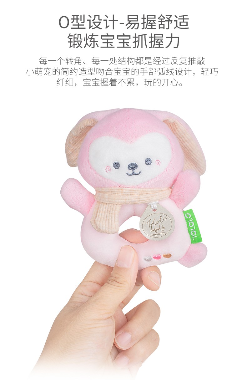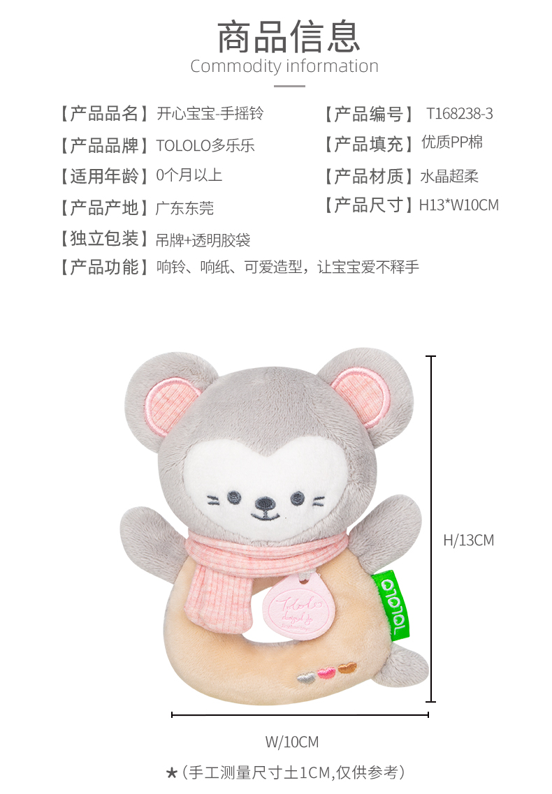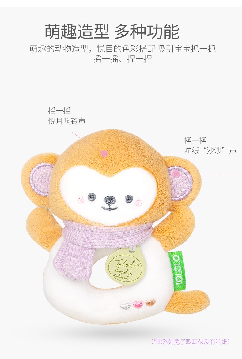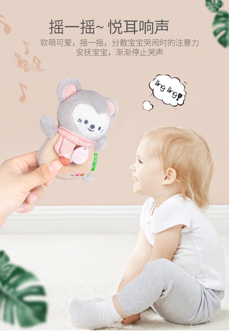 Happy Monkey嬰兒玩具牙膠搖鈴寶寶手搖鈴新生兒玩具毛絨安撫公仔