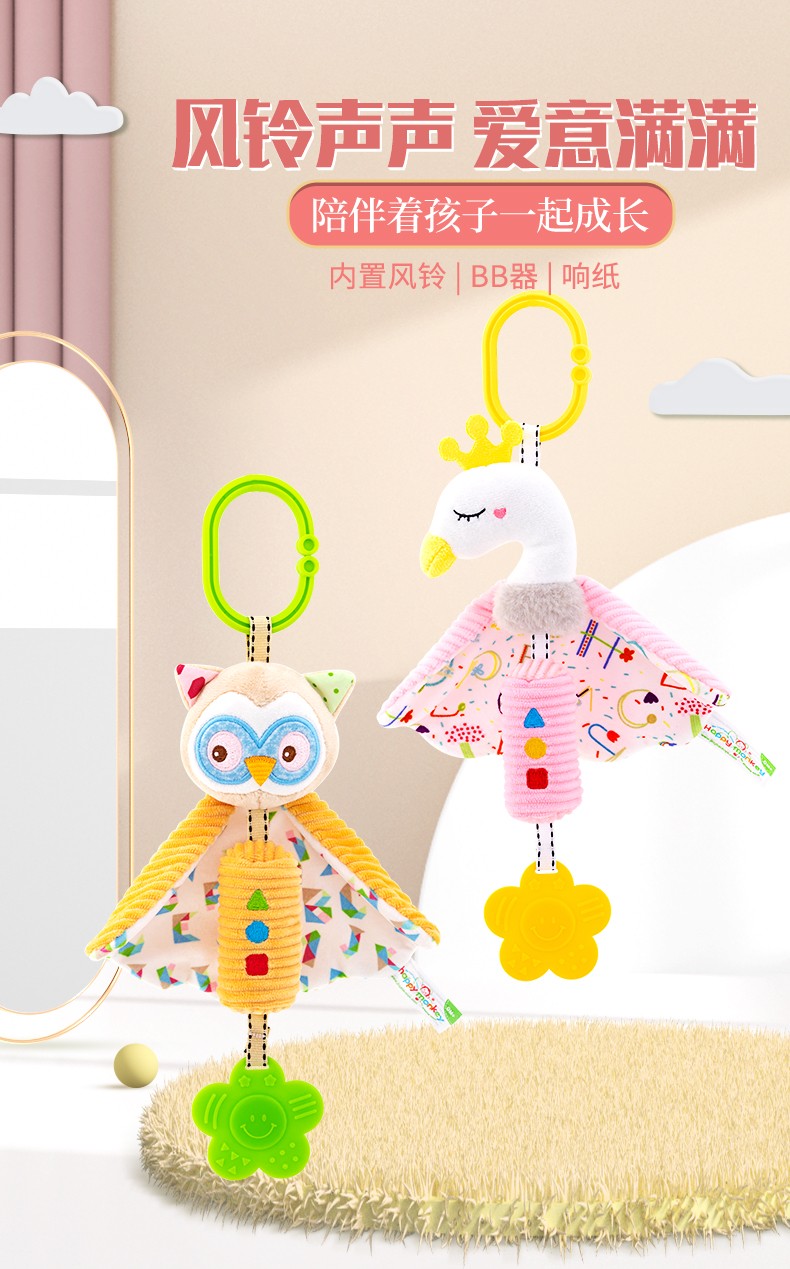 HappyMonkey嬰兒玩具0-3歲早教車床掛天空系列毛絨安撫創意小風鈴的好處: