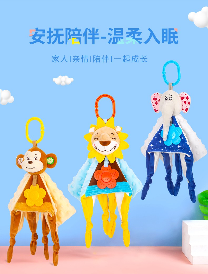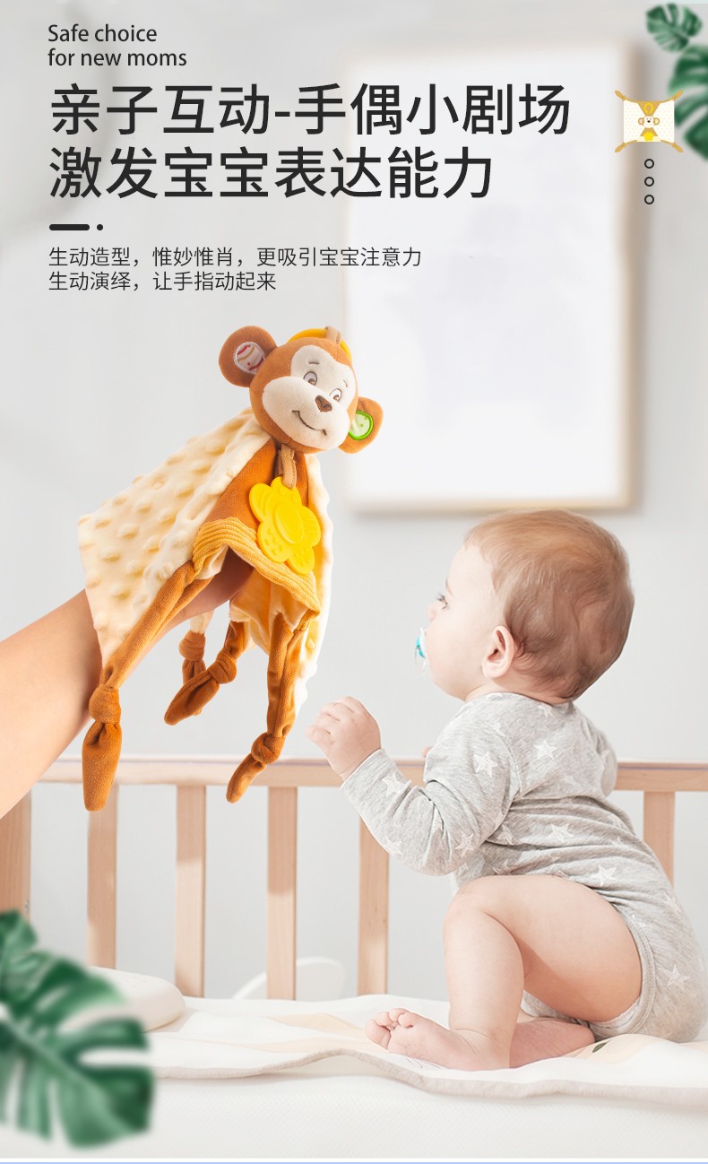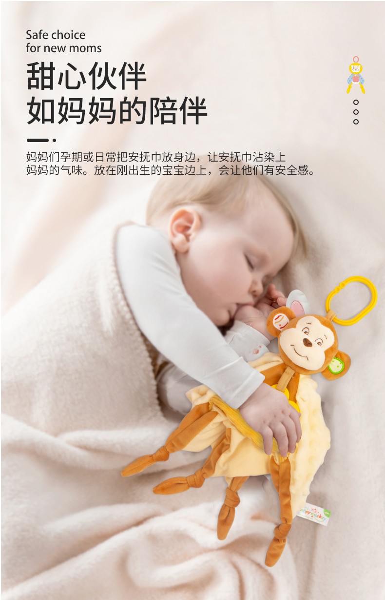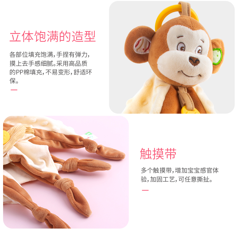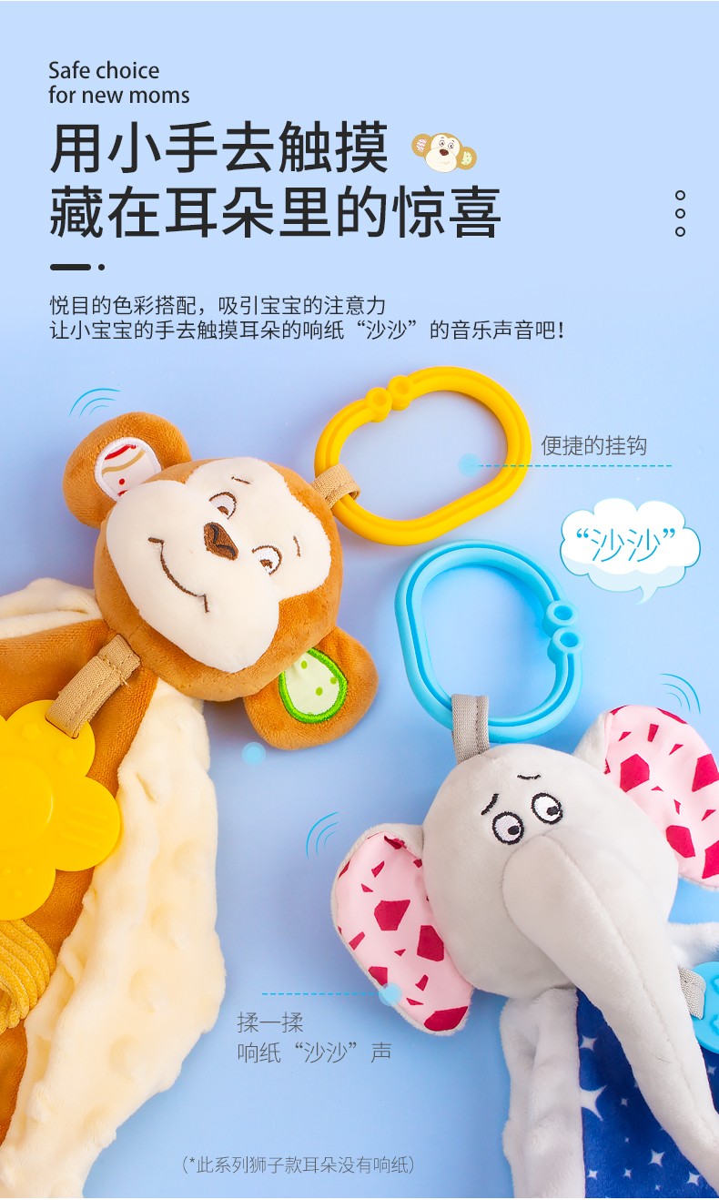 Happymonkey撕不爛毛絨紙巾盒嬰兒玩具0-1歲牙膠響紙早教寶寶玩具
