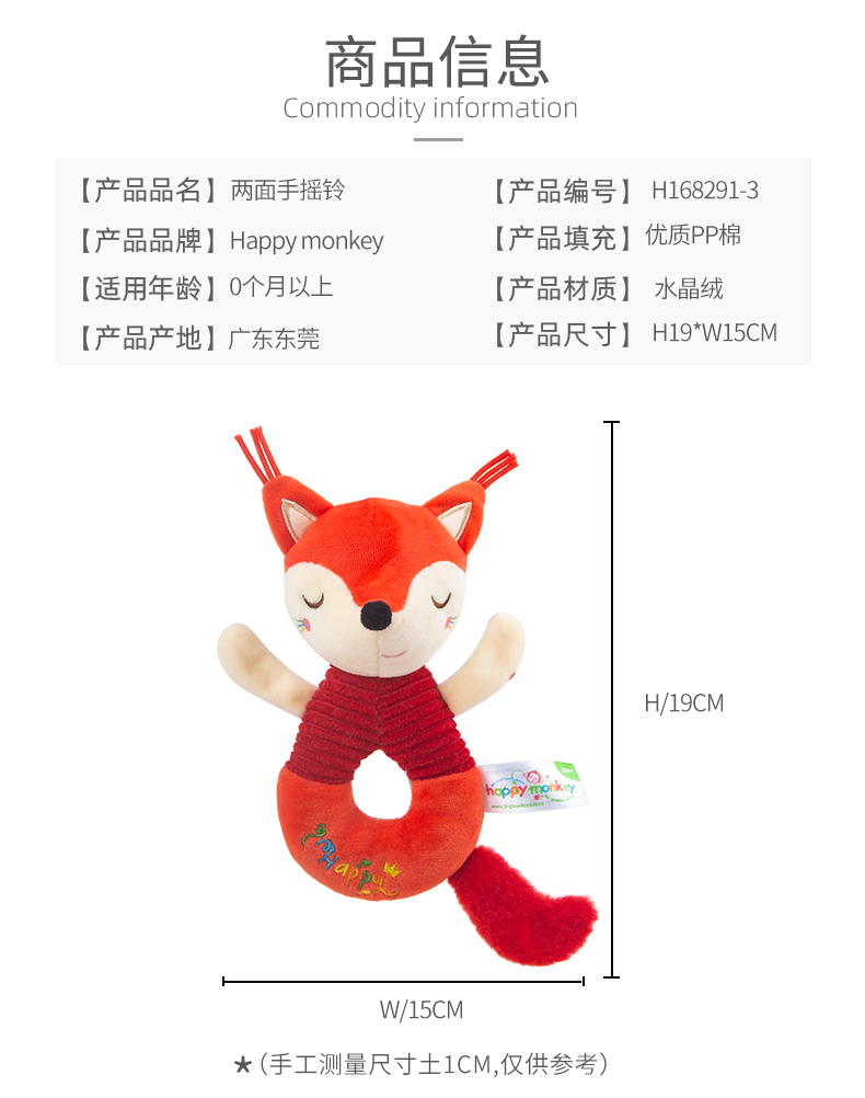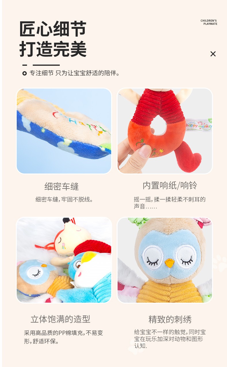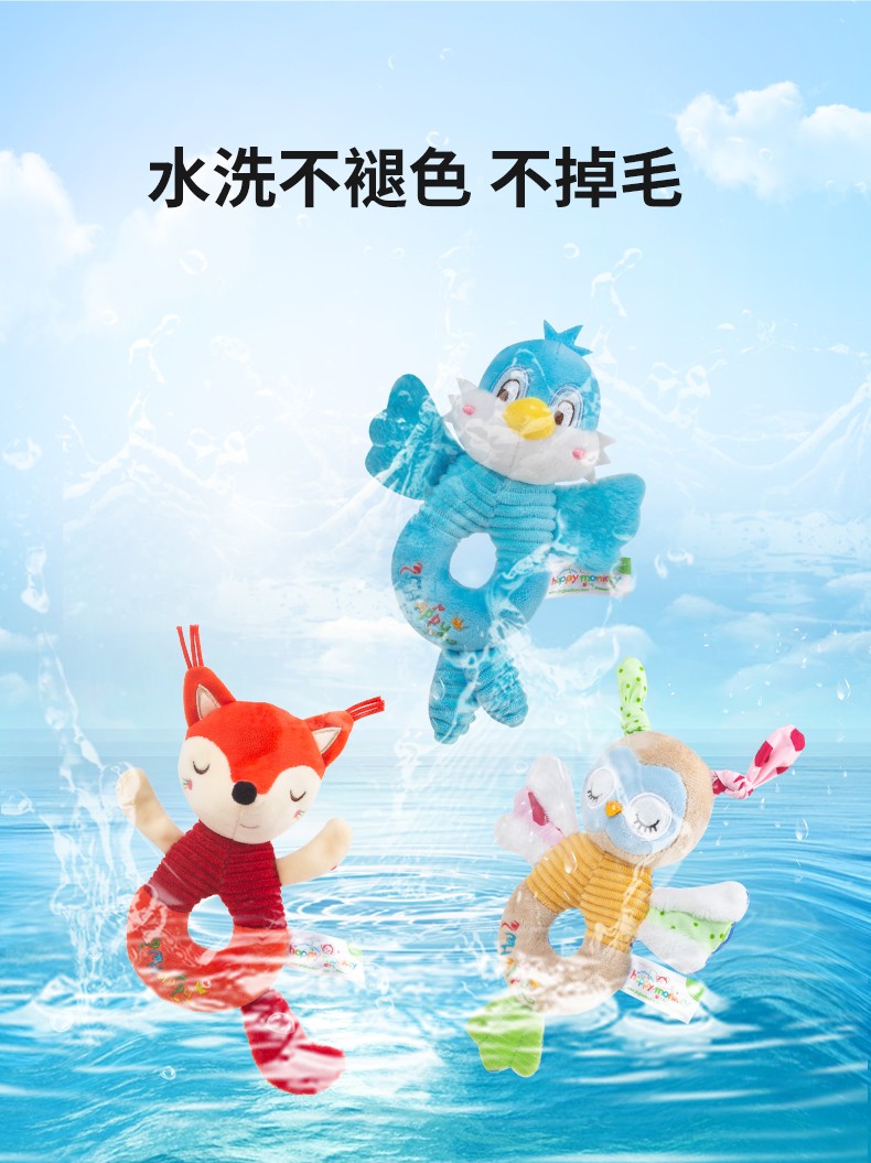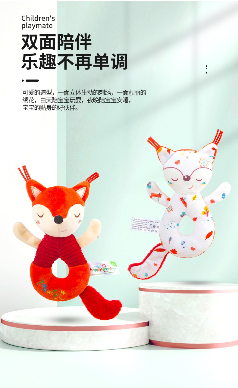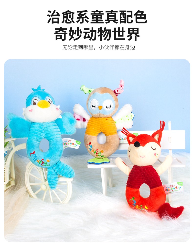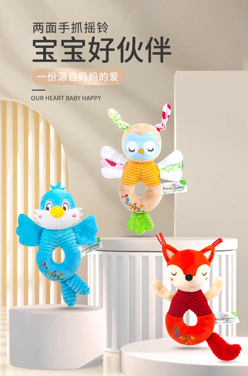 Happy monkey嬰兒玩具0-1歲牙膠手搖鈴安撫新生兒玩具廠家批發(fā)
