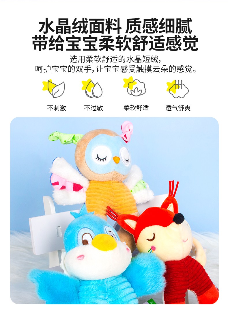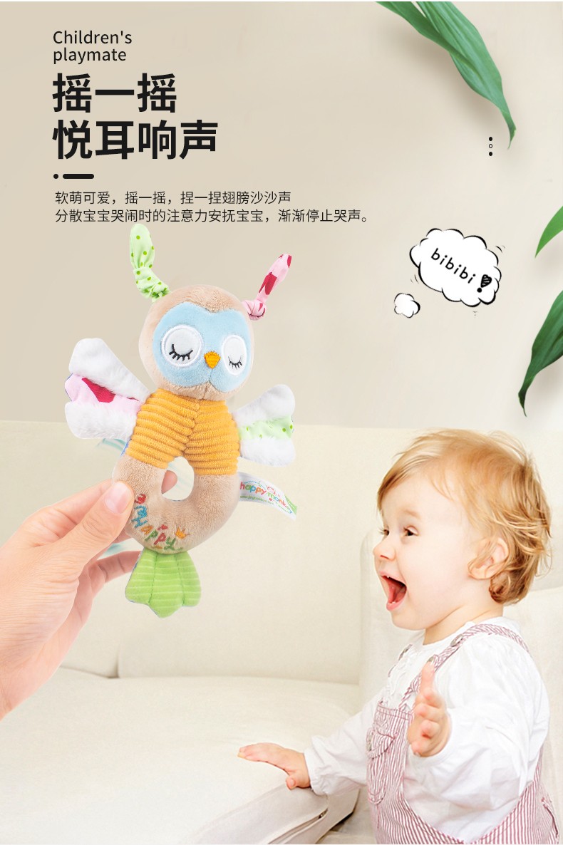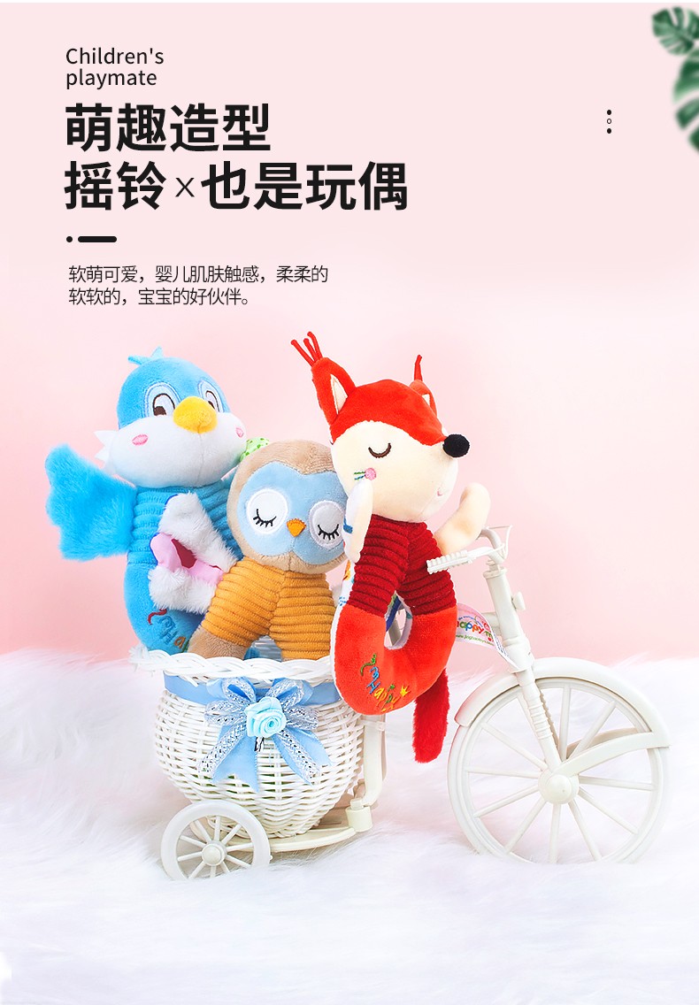 TOLOLO新生兒玩具0-3-6個月毛絨手抓搖鈴1歲寶寶早教嬰兒手搖鈴