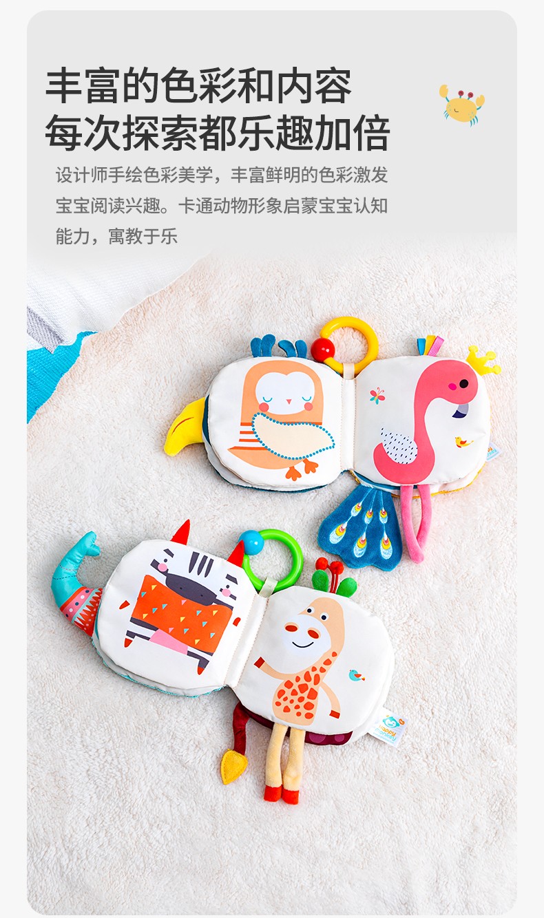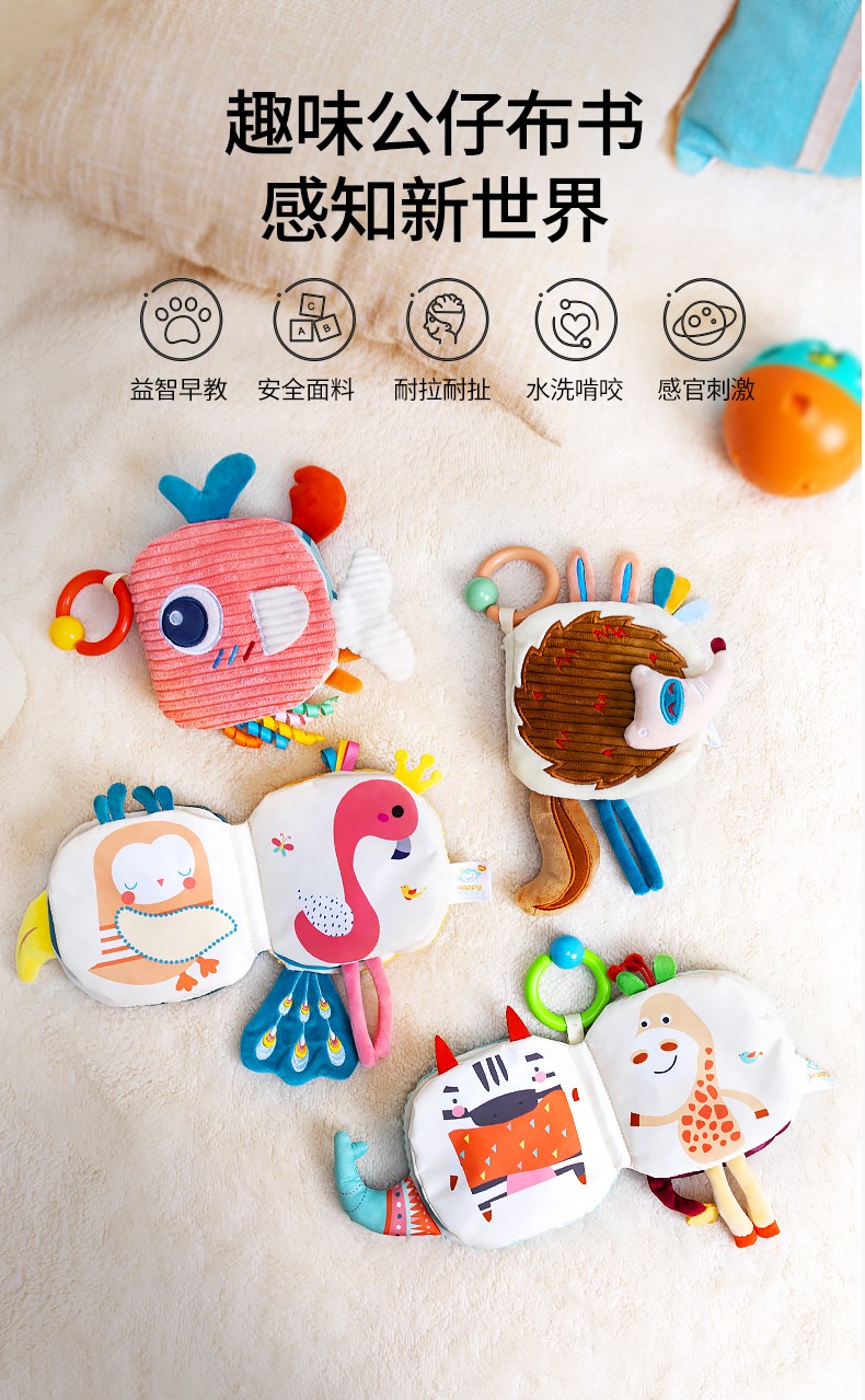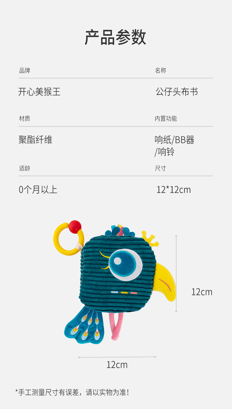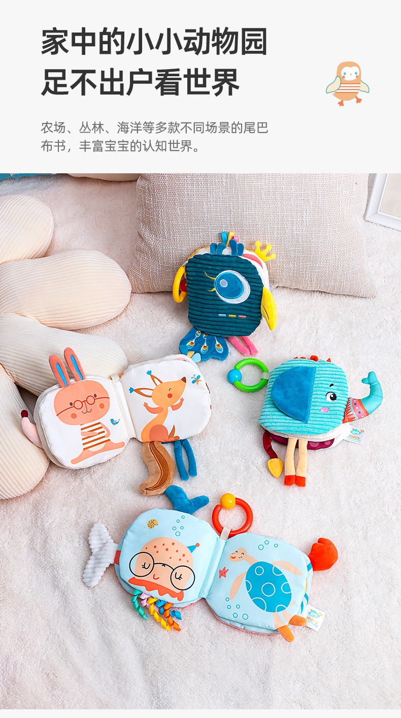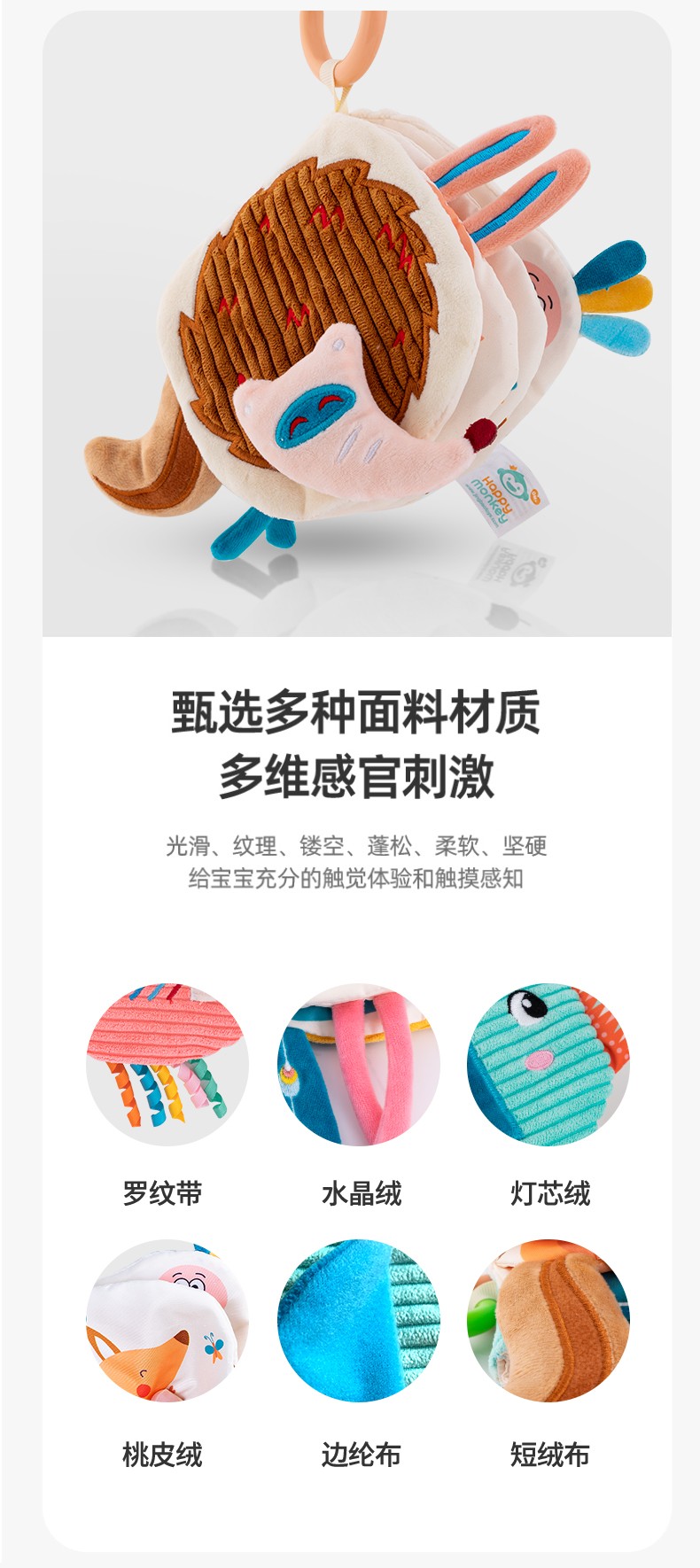 Happy monkey嬰兒早教布書立體撕不爛可啃咬6月寶寶認(rèn)知益智玩具