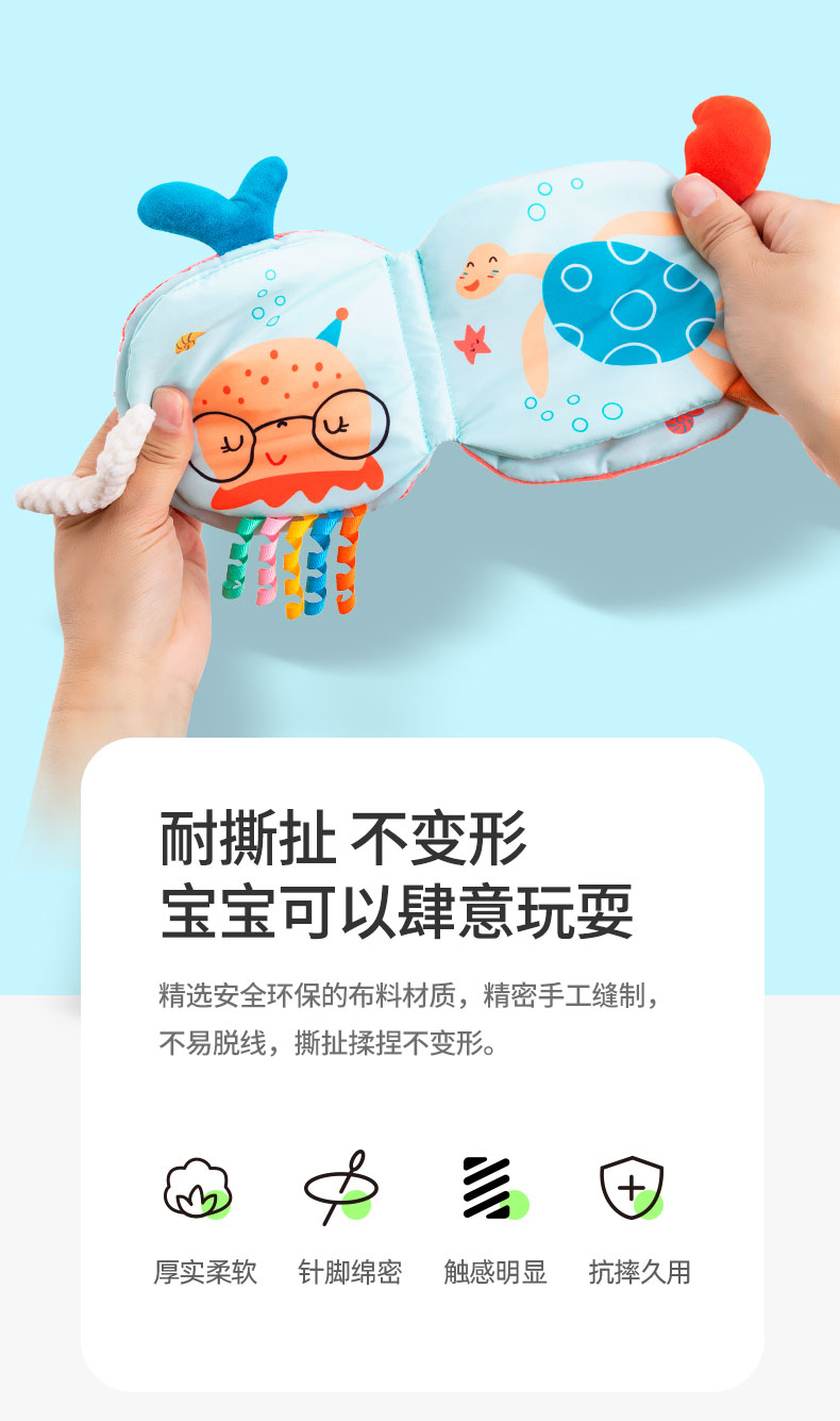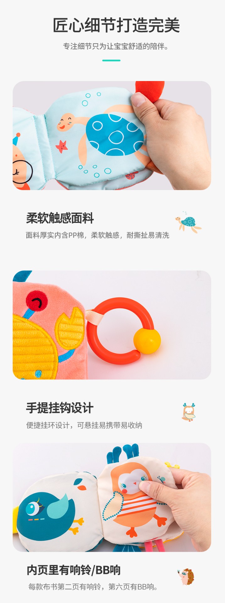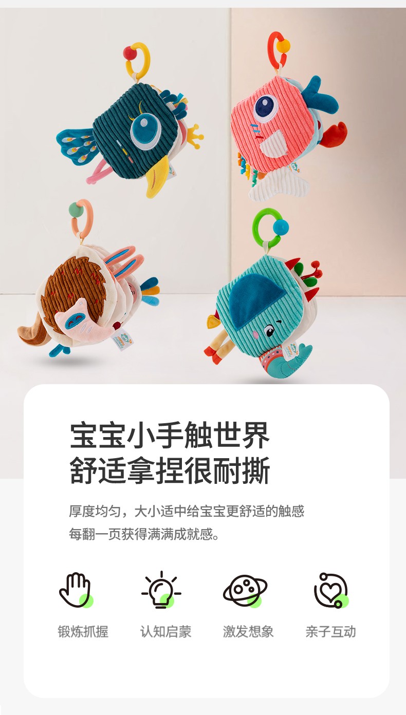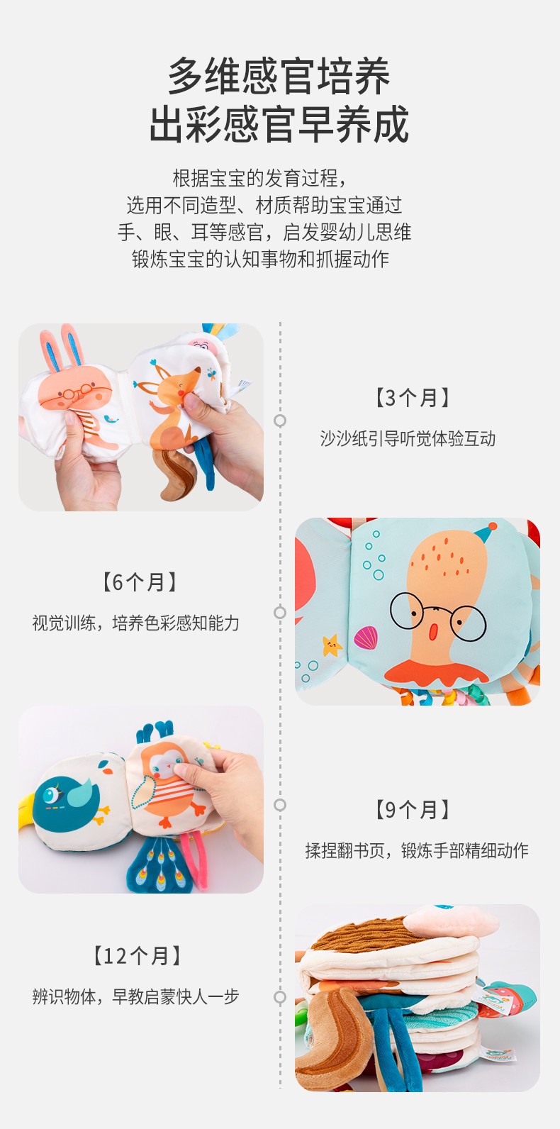 Happy monkey嬰兒早教布書立體撕不爛可啃咬6月寶寶認(rèn)知益智玩具